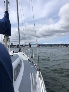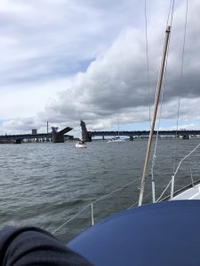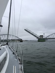 Über Ostern wurden bereits die ersten 120 Seemeilen gesegelt. Hier warten wir gerade im dänischen Sonderborg auf die Brückenöffnung. |