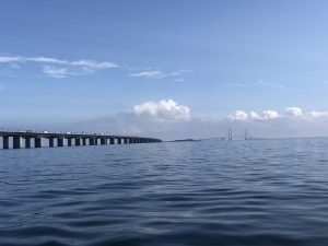 Bei einem der wenigen Tage mit Schwachwind ging es gemütlich durch die bekannte Große-Belt-Brücke. |