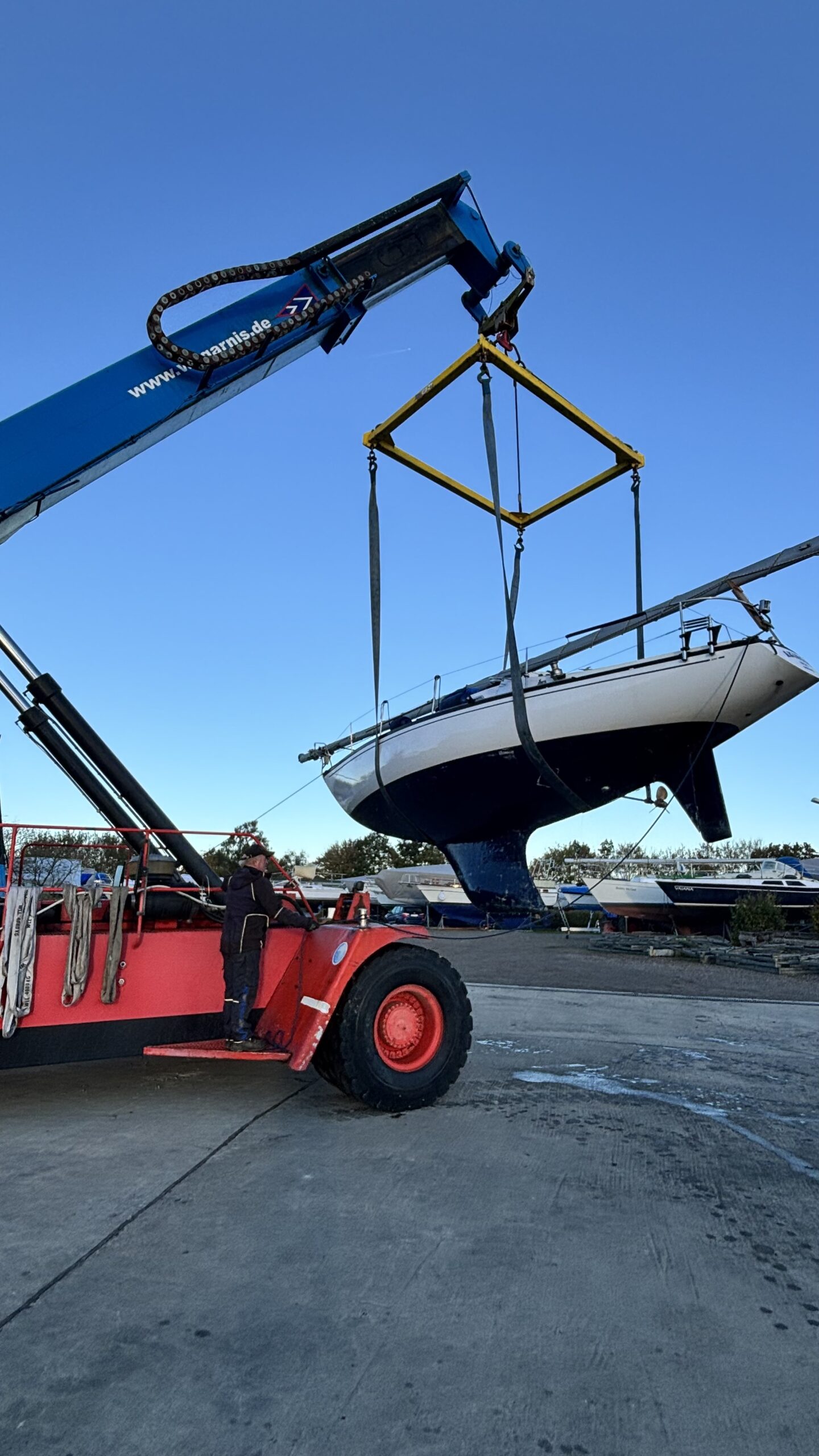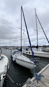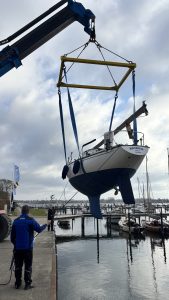 Wenige Stunden später, lief diesmal etwas „hakelig“, lag sie fertig aufgeriggt am Steg. |