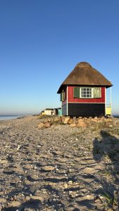 | Am Marstaler-Strand steht das berühmte sehr hübsche rote Strandhaus. |