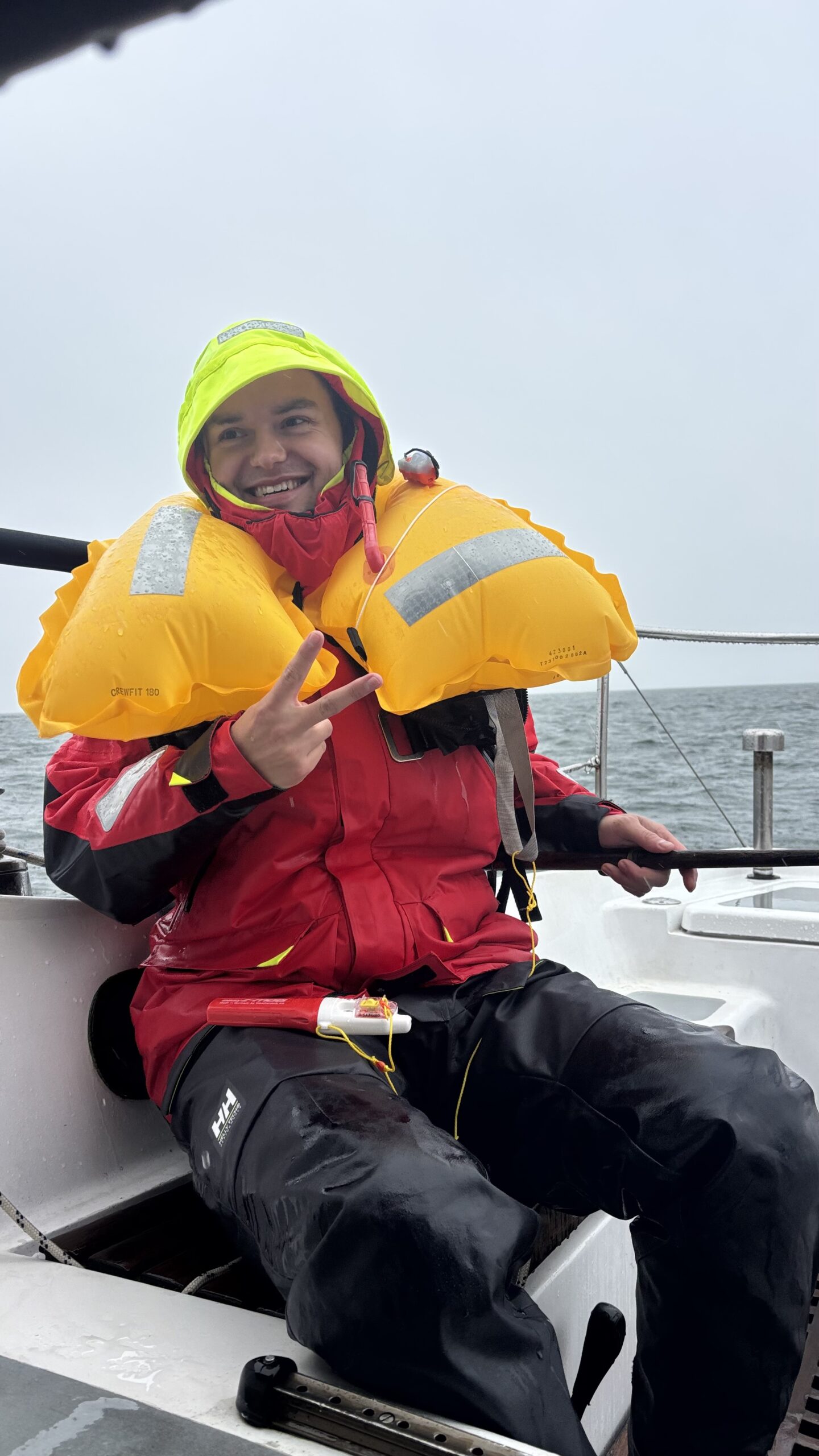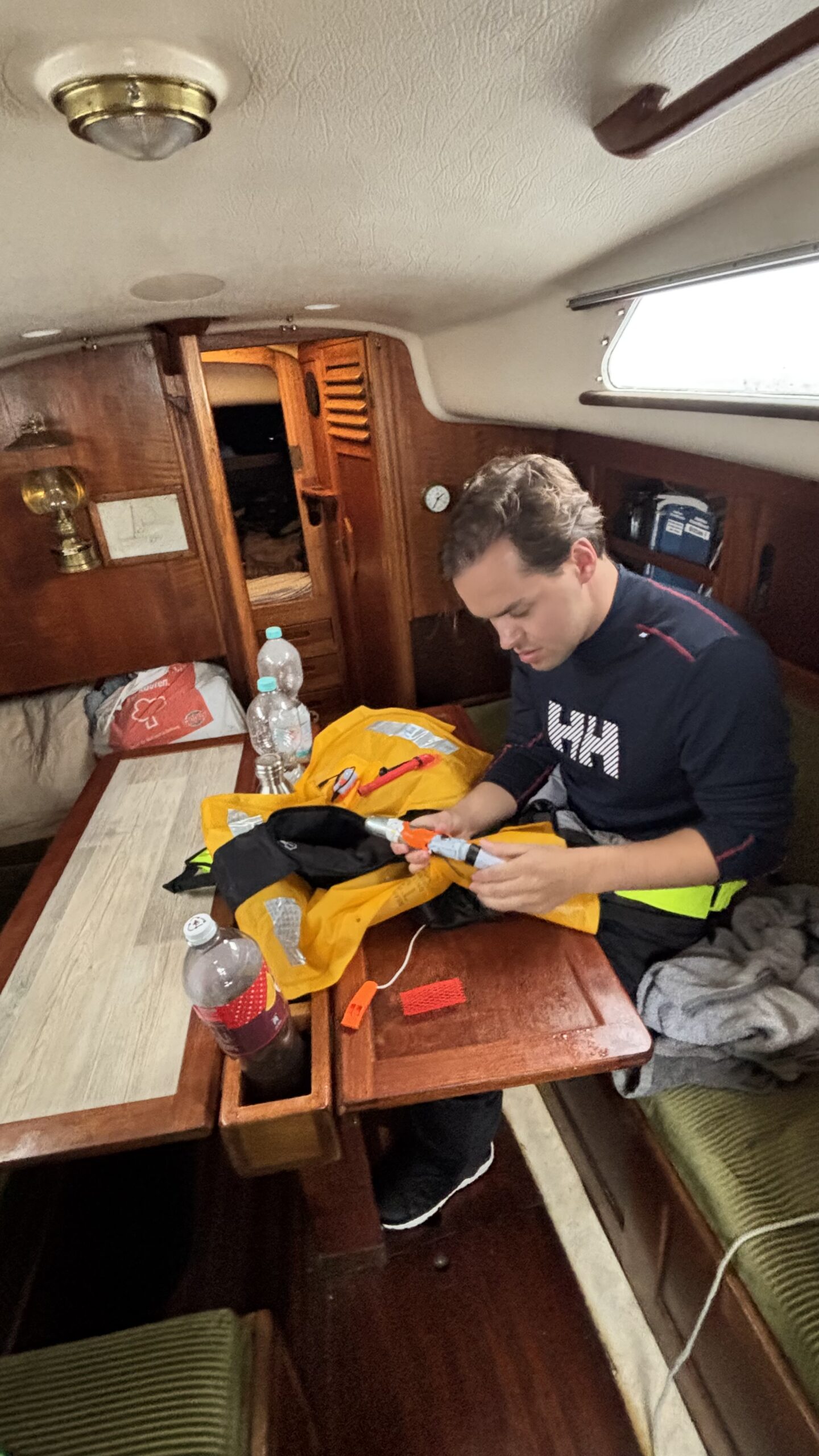 Was macht eine teure Automatikweste wenn man zu lange im Regen sitzt (ohne Gischt), sie löst aus. Es machte kurz „Puff“ und der kleine Moritz saß ein bisschen aufgeblasen da… |